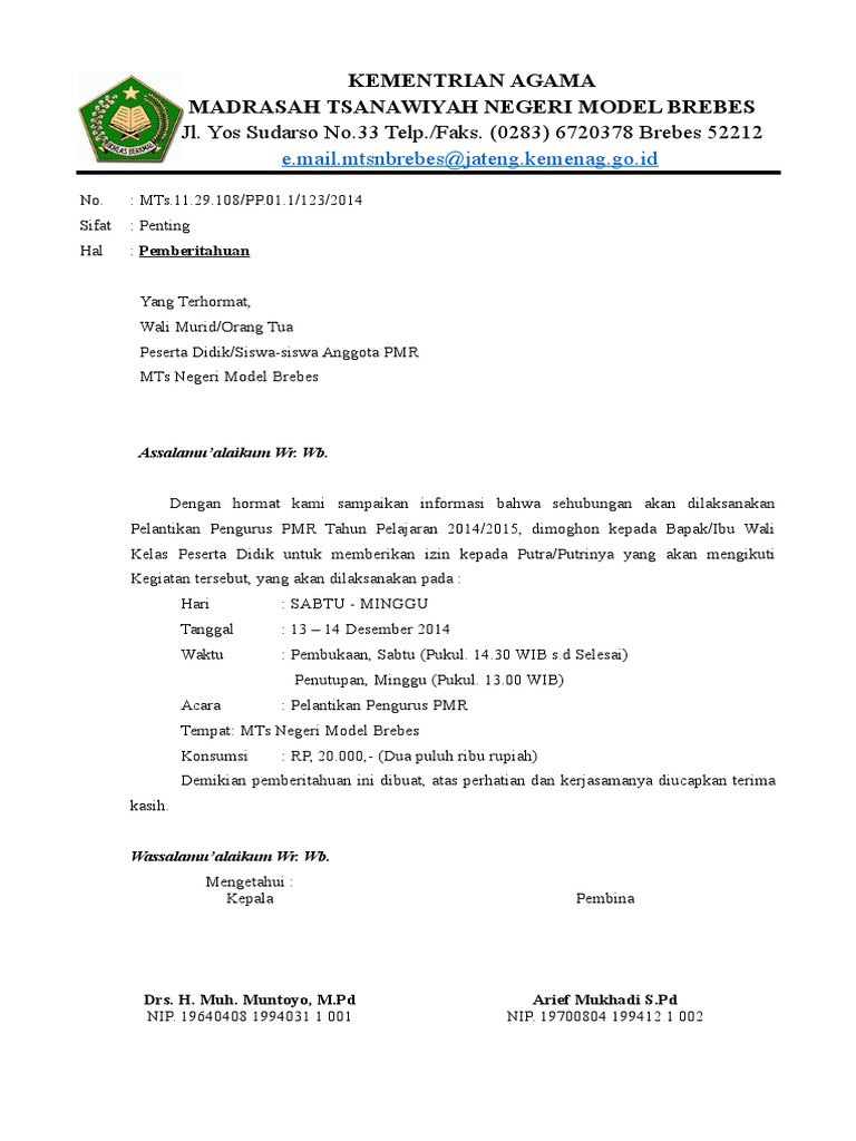 Contoh Surat Dinas Sekolah Mts : Contoh Surat Pemberitahuan Pembayaran Sekolah Untuk Wali Murid Suratkerja Com - Nah pada artikel kali ini akan kita ulas lebih dalam lagi mengenai.. Maka tidak heran jika pihak sekolah terkadang harus sampai mengeluarkan peringatan ataupun surat pemanggilan kepada orang tua siswa yang. Contoh surat dinas resmi sekolah setiap kegiatan sekolah yang bersifat resmi biasanya disertai dengan dikeluarkannya surat resmi. Surat resmi tersebut berfungsi untuk memberikan informasi kepada pihak lain atau instansi yang terkait. Surat dinas dibagi dalam beberapa jenis yaitu surat dinas sekolah, pendidikan, surat dinas yang resmi dan sebagainya. Contoh surat dinas resmi sekolah ~ setiap kegiatan sekolah yang bersifat resmi biasanya disertai dengan dikeluarkannya surat resmi.