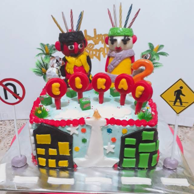 Kue ondel ondel betawi , kue ulang tahun bertema ondel ondel betawi ini cukup simpel pembuatannya dengan kombinasi.